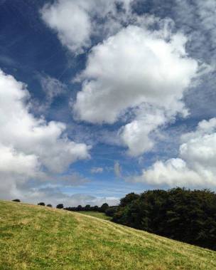Clouds and green hills,
