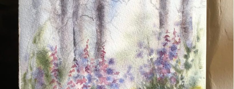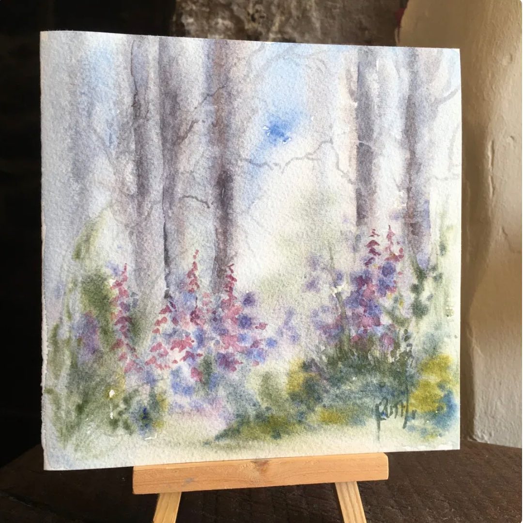 “This original watercolour card is 6”x6”.